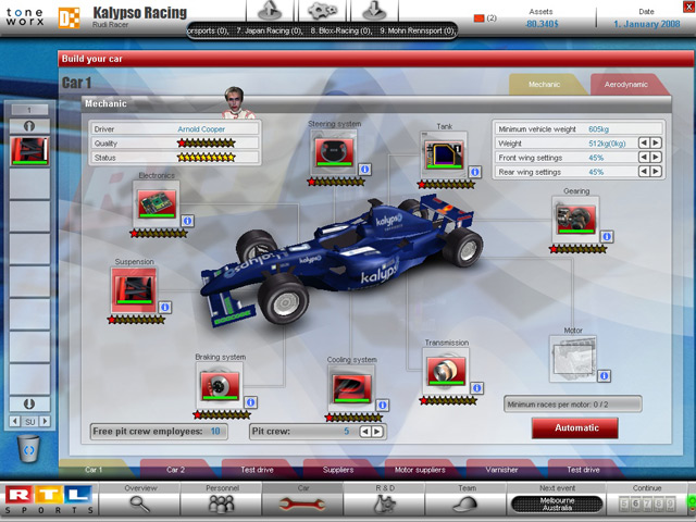 success of your drivers on racing weekends. You keep an overview during training, qualification, and actual races.